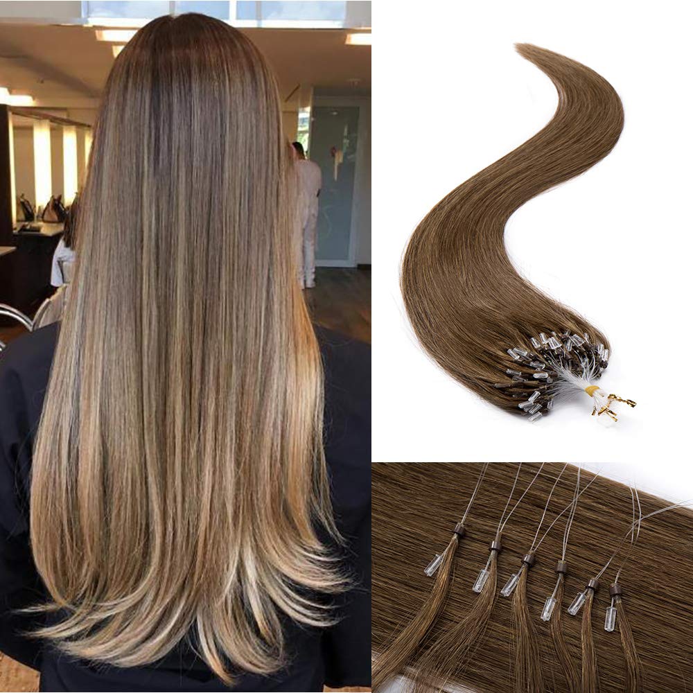 Amazon Com Sego Micro Ring Loop Hair Extensions Human Hair Micro Links Beads Remy Hair Extension Cold Fusion Pre Bonded Nano Rings Tipped Straight Real Hairpiece 100 Strands 50g 18inch 06 Light